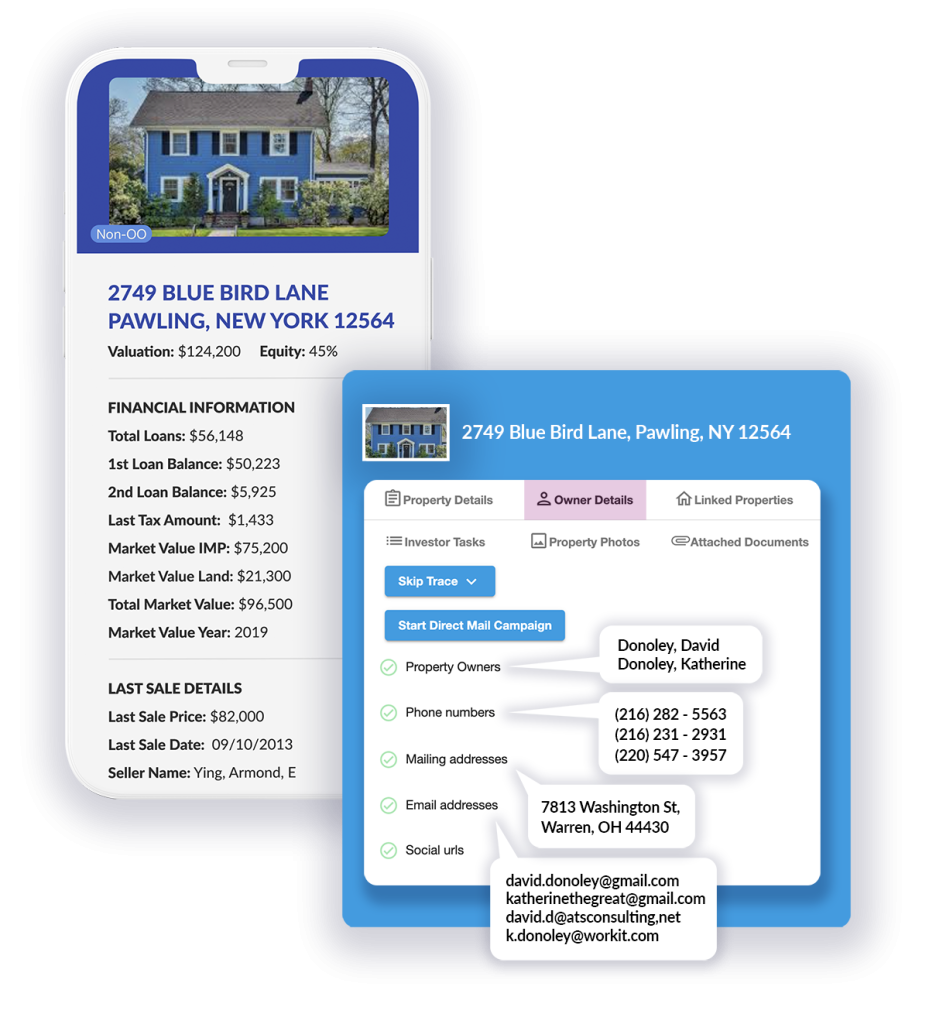 Enterprise software suite that makes finding profitable deals “point & click” easy! Look up the property, get actionable info – owner contact, mortgage data, debt analysis, property details & so much more.